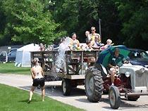 Great campground for families. Playgrounds, cartoons, mini golf, tractor rides, pool, arcade, activities put on by the staff and much more. This place has been around for years and years and some of the attractions show it. Needs a little updating with the roads and mini golf. Firepits are sunk into the ground and kind of small. It's hard to get them started since there's not much air circulation. Phone signal is pretty much non existent and the WiFi they have never worked. Sites are nice for groups too. Pull through sites where you can face each other and have room in between for gathering. Also back in sites as well and they're all grass so you can kind of park any way you want. Theres railroad tracks closeby and the trains are flying by so you will hear them quite often. But overall the staff is super friendly and its mostly quiet too being away from any cities theres lots of stars for the gazers. I would come here again.