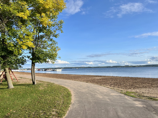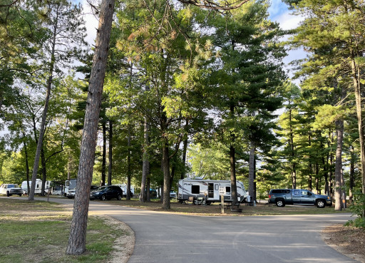 Gem of a park! Campground is mostly shaded by a variety of beautiful trees. Space #9 is roomy. Park has a couple buildings that have bathrooms and showers. Nice beach area for swimming. Boat launch. Large playground. Camp store and snack shop. Bike trails nearby. Easy bike ride into town. Golf course across the road. Bars / restaurants nearby.