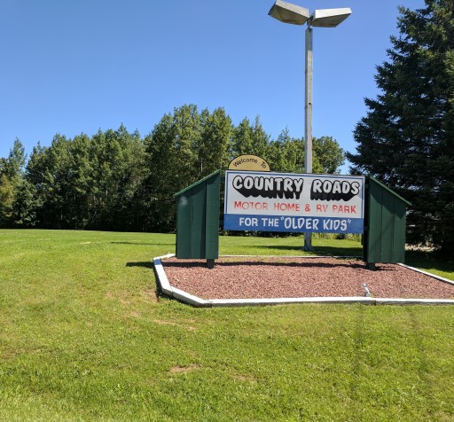 Country Roads is a nice park in the Baraboo/Wisconsin Dells area. It is located near a Walmart and Home Depot so civilization is nearby. It's right off a highway but we couldn't hear any road noise from the back half of the park. I didn't check up front. Travel from the park to area attractions was easy and convenient.