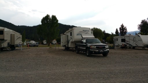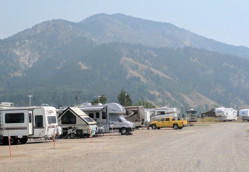 Very basic campground, gravel sites close together. There are what look like permanent residents at campground. Be careful if you have a dog or dogs, some people let their dogs run free and there was a dog fight near our RV. Price is not bad when compared to Jackson Hole. About 37 miles to Jackson Hole. We were able to visit Grand Tetons with a 2 night stay.
