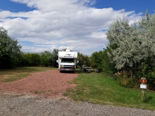 Literally blew in here off of a Bighorn windstorm and so very glad I did. Happened to meet the gracious owner, Char (Charlotte) at the entrance and she led me down to a lake side spot. There are a few sites with electrical hookups (we arrived too late for one), but most and the prettiest sites, are along the Lake. Very quiet spot and would come here again.