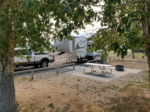 This is a quiet campground with lots of green space. Pull through sites are easy access. The bathrooms were clean - bring quarters as the change machine doesn’t always work. Firewood is available at the campground host. We arrived without a reservation mid afternoon and got a site with electricity. Potable water is available. Close to Yellowstone and Cody.