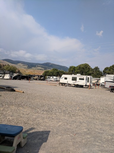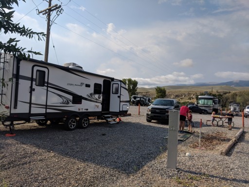 Spent 2 nights in early August 2023. Gravel lot with fencing between sites. Sites are average size. Bathrooms are clean and well maintained. Enjoyed restaurants in Dubois especially noon rock pizza and cowboy cafe.