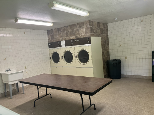Almost in downtown Evanston, WY. It's decent enough even if it's not our type of camping. It has a nice, fairly clean laundromat…6 regular top load machines @ $2 a load and 3 dryers @ $.25 for 8 minutes. I say fairly clean because we had to wipe dust off the folding table and there was gritty sand/dust in the bottom of a couple of washers. The dryers worked well. Our drive-thru space is a somewhat lumpy grass pad. It took a little jockeying to get it level but we did it without resorting to pads and blocks. Lots of traffic noise so if that bothers you this is not the place. No pool but full hookups, free but weak wifi, good cell service on AT&T. We didn't use the showers or restrooms. Roadways are dirt/gravel, restaurants within a short walk. Rodeo just up the street. $33/night.