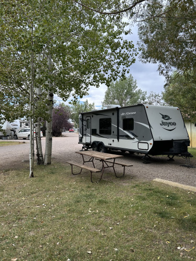 It's the only RV park in town and very affordable. We paid $53 a night for FHU. This is the second time we stayed there and I appreciate the mature shade trees. The overnighter sites are oriented north-south so had no problem setting up our Starlink. The park has decent WiFi. The sites are level gravel/grass. The laundry is affordable and the showers are decent.
