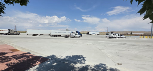 Awesome rest area with covered picnic tables, shade trees and HUGE truck/RV parking area. Clean restrooms.
