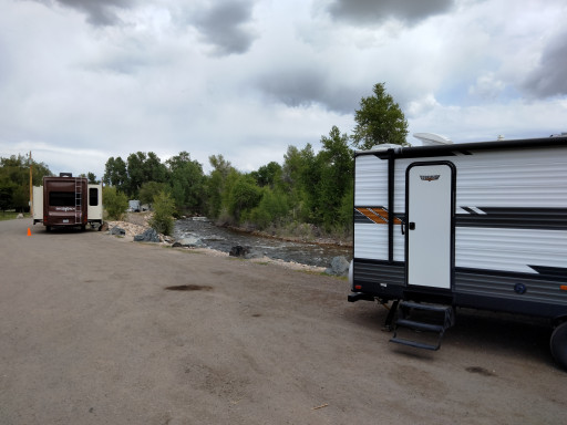 Very convenient, free parking spots near and alongside the Popo Agie (puh-POH-zhuh) River. The official sites include a trash can and picnic table, but many campers also camped along the road or in between sites.