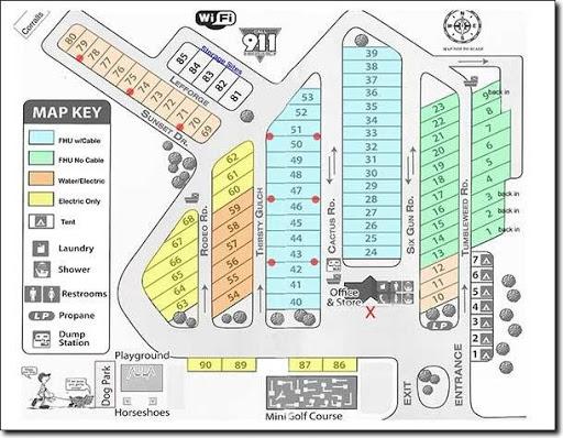 We arrive late and found the enclosed late high check in area. Envelopes were arranged by available sites and instructions we clearly provided. This is important when you've never been there before. Most RV membership (ie, FMCA, Good Sam) are accepted.