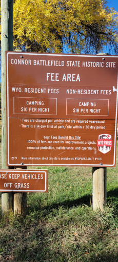 Cute little park, but it's more like a city park than a state park. Potable water, bathrooms, picnic tables, and fire rings. Tongue river flows beside it. Road in can get very muddy but is passable. Sites are graveled and mostly level, park clean and maintained. Maybe 1 spot able to take big rigs, otherwise mostly small to medium spots. Trash bins scattered throughout. Verizon worked well 2-3 bars. If not a WY resident it is $20/nt for dry camping. Good for an overnight but not a destination. Train in distance with some low rumbling and few light whistles that weren't too loud. Locals walk through during day, often with pets, and were friendly. Felt safe alone. A bit pricey for dry camping but was a nice break from driving.